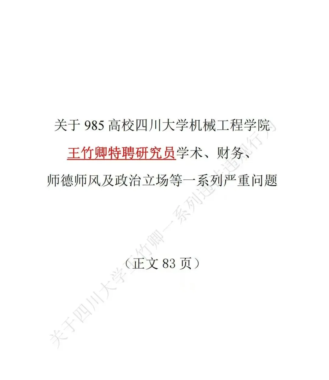 四川大学王竹卿83页举报信事件PDF完整版下载!