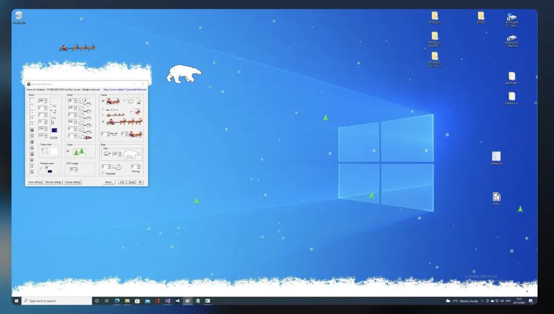 这是一款曾经免费,再次更新后开始收费(0.99)的 Windows 小工具,它的唯一效果是在桌面上下雪(动态)。