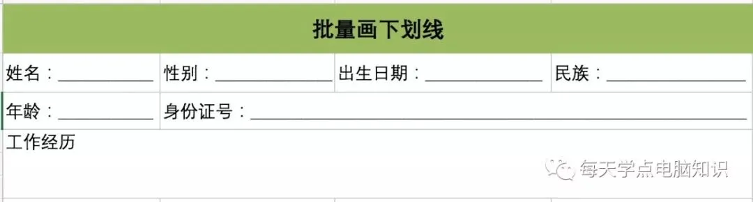 1、如何批量给excel表格画下划线,效果如图: