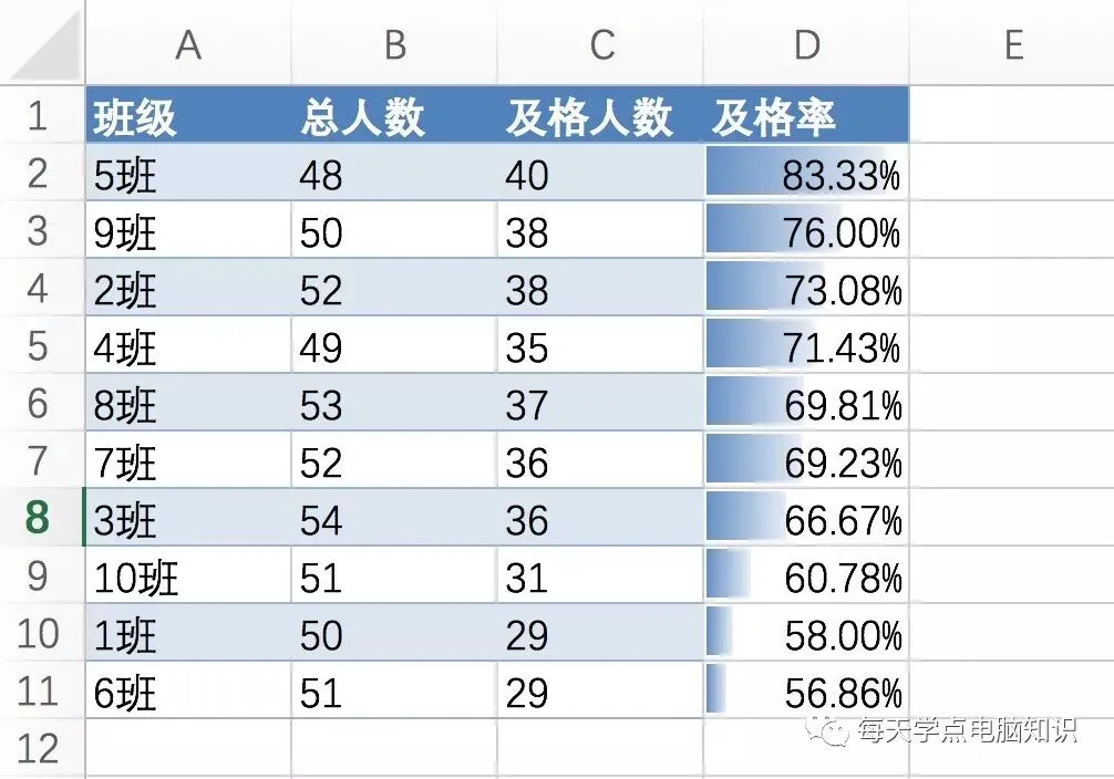 2、如何美化数据表格,让表格显得高大上,效果如图: