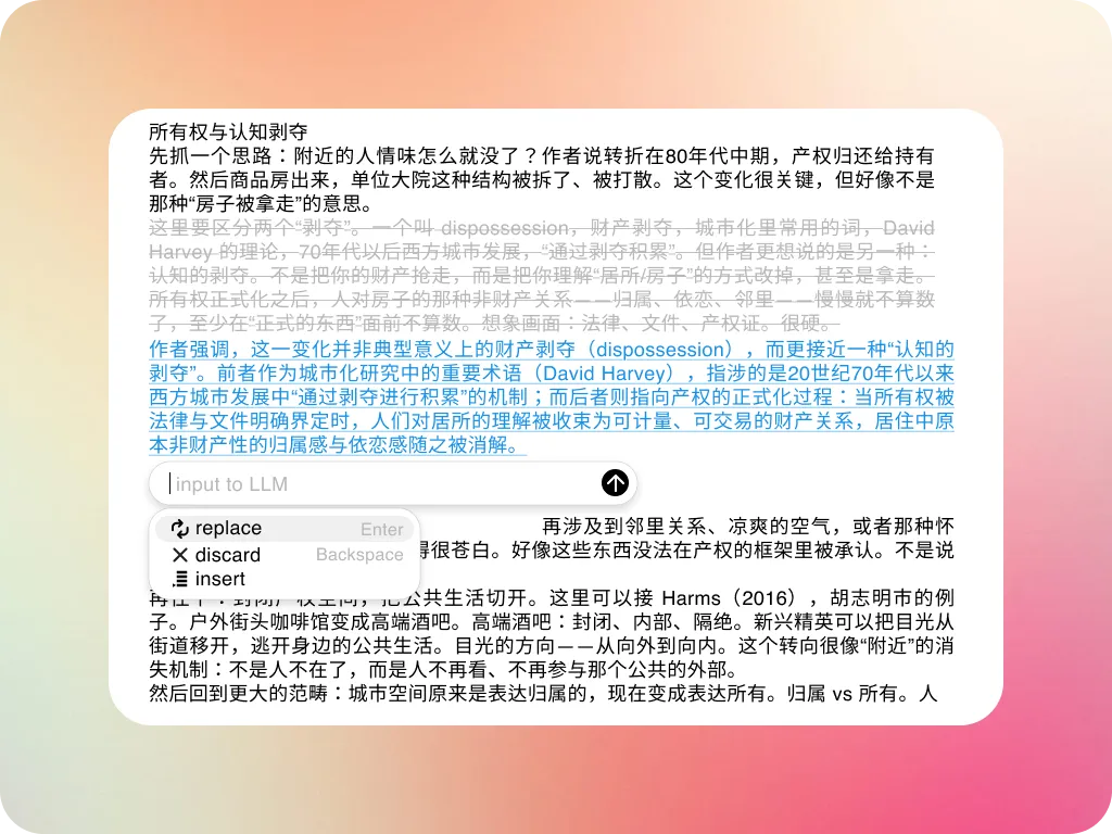 然而,对于研究者、分析师、作家等知识生产者而言,至今仍需依赖通用对话界面,在 ChatGPT 与 Microsoft Word 之间反复粘贴——尚未出现一款为知识生产流程深度定制的 AI 原生工具。