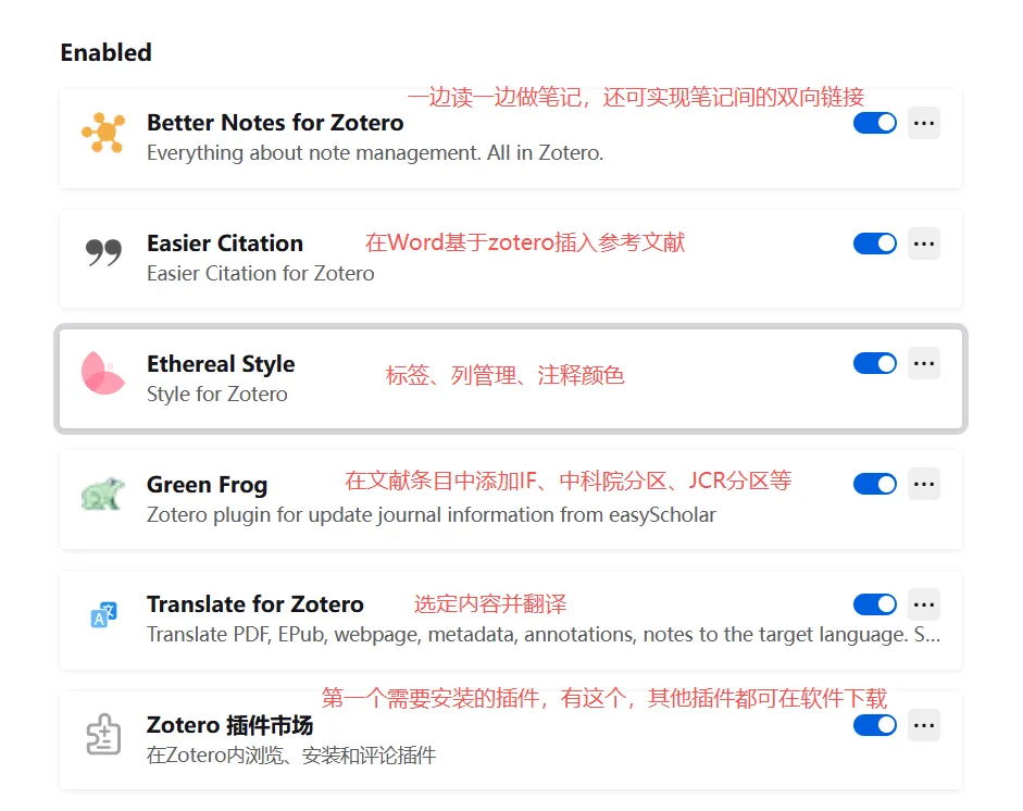 大家可以去了解下zotero的各项插件功能,自取所需,我根据网上推荐下载了以下几个插件。