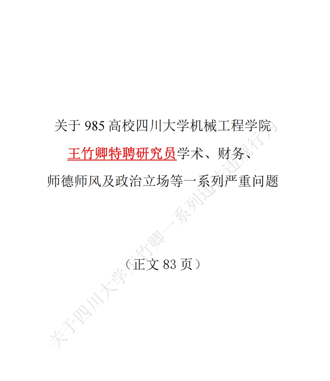 【完整版PDF】四川大学王竹卿被举报83页PDF电子版,完整版