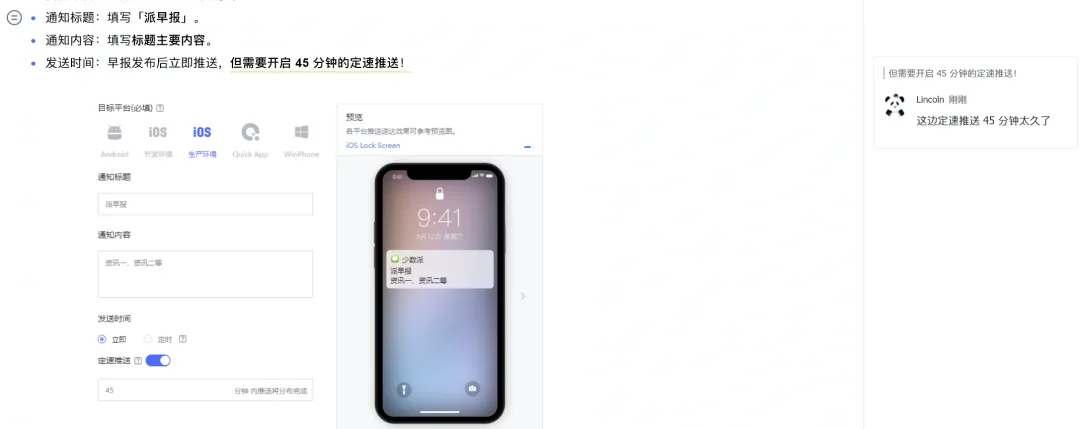 更重要的是,因为和飞书的高度整合,发现知识库中有过时、需要补充的内容时,我也可以直接在对应内容处评论、at 相关负责人进行二次确认,大大提高了知识库维护、更新和迭代的效率。