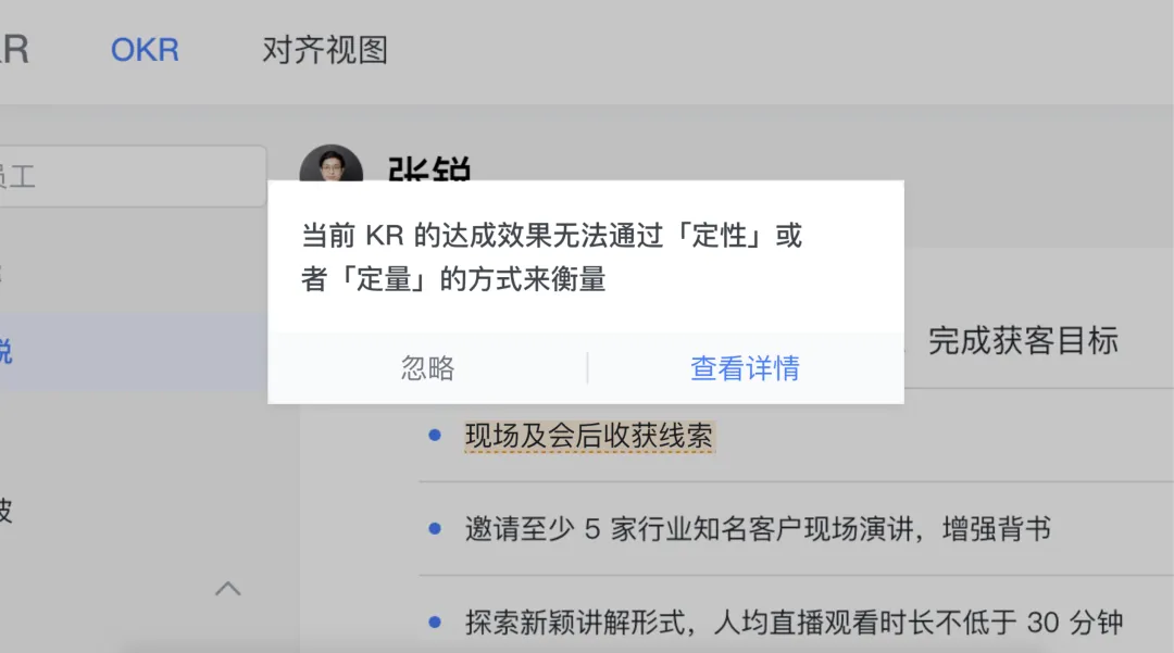 OKR 定制助手可以帮忙找到 OKR 中错误的目标和关键结果