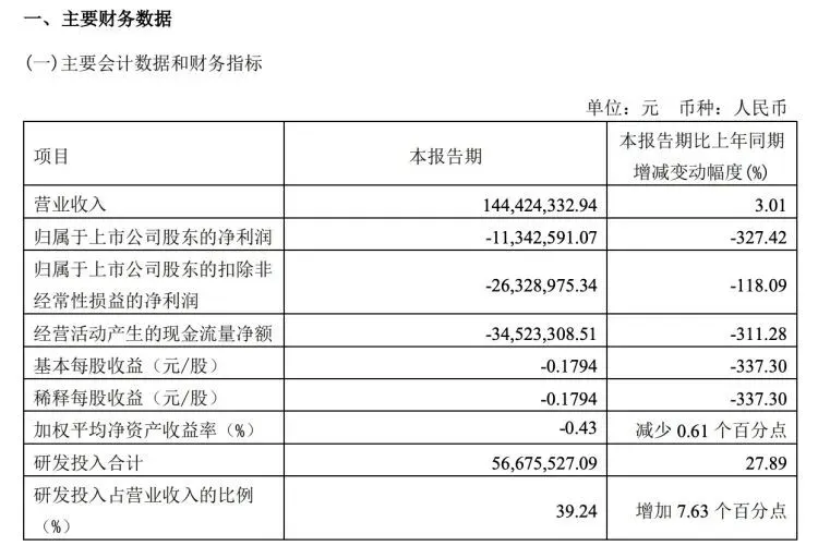 此外,公司实现归属于上市公司股东的净利润-1,134.26万元,同比减少327.42%;归属于上市公司股东的扣除非经常性损益的净利润为-2,632.90万元,同比减少了118.09%。
