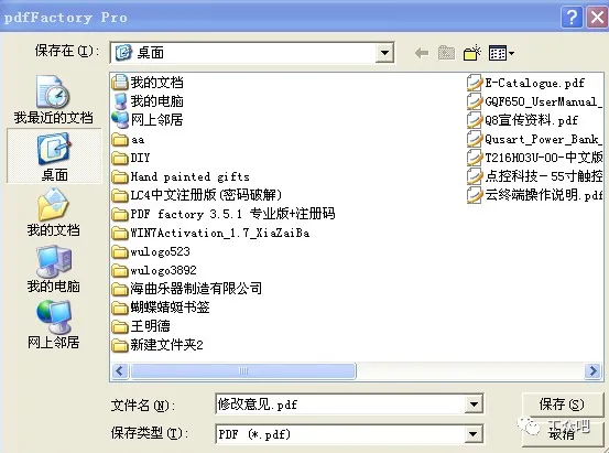 只需在打印的时候,选择PDF打印机:pdfFactoryPro进行打印即可弹出保存对话框,提示你保存你想要的PDF文件即可