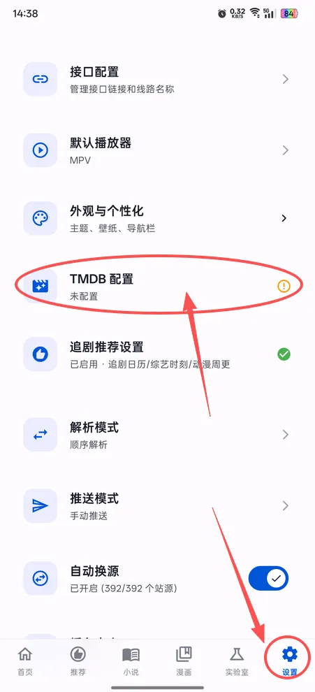 1、打开软件,点击【设置-TMDB配置】