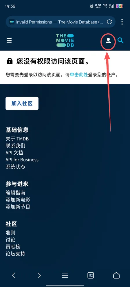 2、点击【启用TMDB集成】,然后点击下面秘钥位置的【获取】