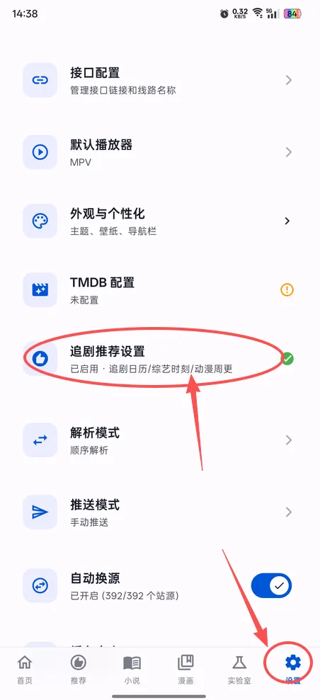 1、点击【设置-追剧推荐设置】