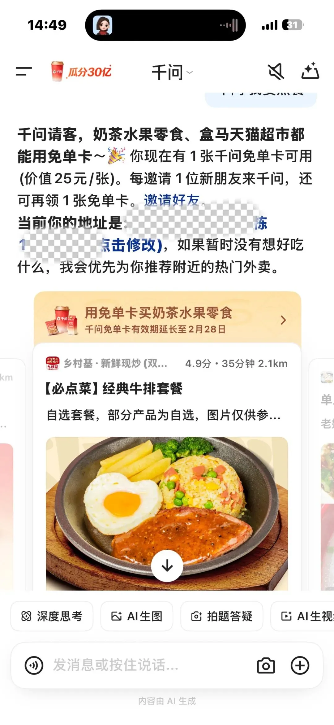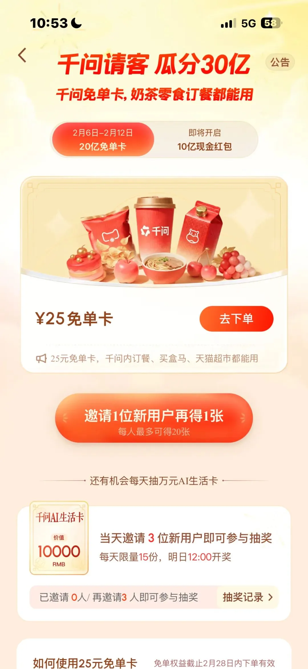 速薅千问APP羊毛,不止25元额度,奶茶、外卖、超市好物全都能兑