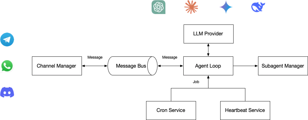 刚好前几天看到香港大学 HKUDS 开源了一个极简版的 OpenClaw 实现 NanoBot https://github.com/HKUDS/nanobot ,趁着大姨子和小姨子周末帮忙带娃,快速浏览了一下源码。