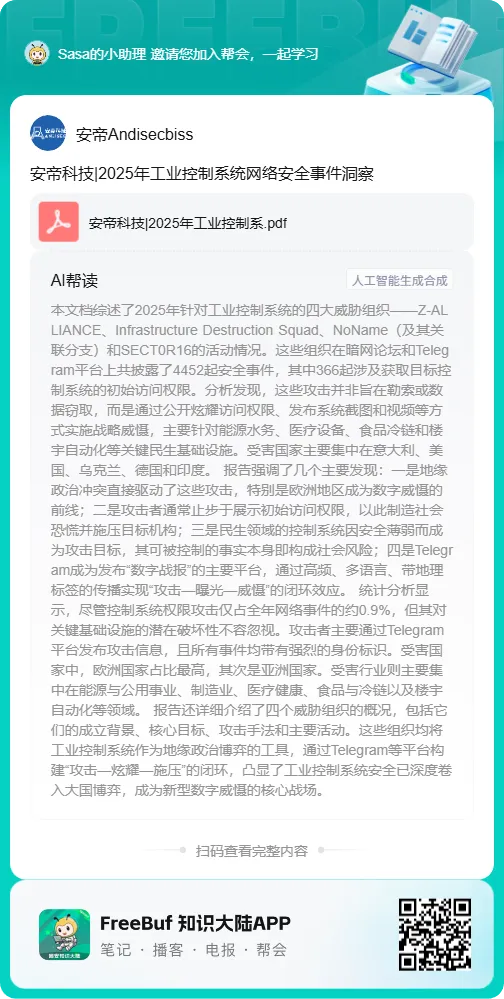 每周PDF资源:工控系统网络安全事件洞察;软件供应链下的安全治理;攻防演练中的快速打点思路