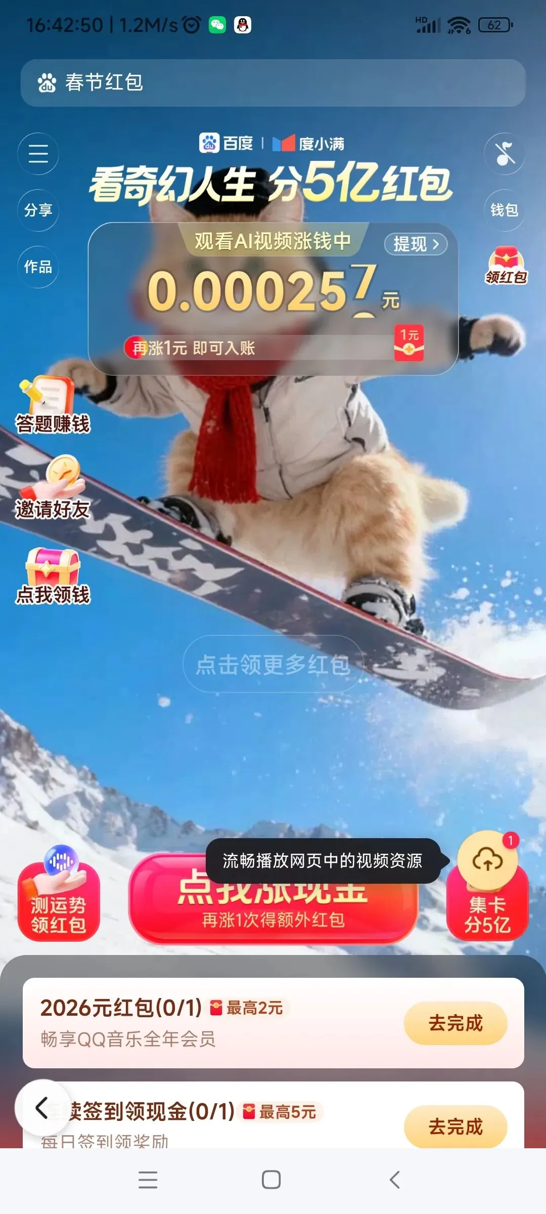2026百度APP春节红包:1月26日-3月12日,总奖金5亿元,单个最高10000元。