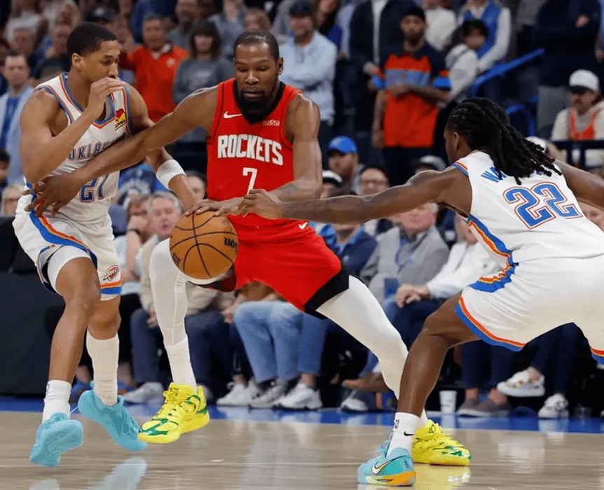 火箭在今天的比赛中对阵雷霆,虽然火箭近期状态糟糕,但是雷霆这边也缺少了亚历山大,所以火箭还是有望获得比赛胜利,而在比赛开始后火箭早早找到三分状态确实建立领先,可惜后续火箭进攻低迷还频频失误,雷霆抓住机会不仅仅是完成反超还建立领先,只不过下半场比赛火箭加强了防守不说,同时火箭又找到三分手感,所以火箭再次完成反超,而且在关键时刻火箭有杜兰特得分,最终火箭是成功战胜了雷霆。雷霆输掉比赛后遭遇2连败排在西部第一的位置,至于火箭则躲过一劫,毕竟火箭近期2连败西部第四的位置岌岌可危,如今火箭赢球后才保住西部第四的位置。