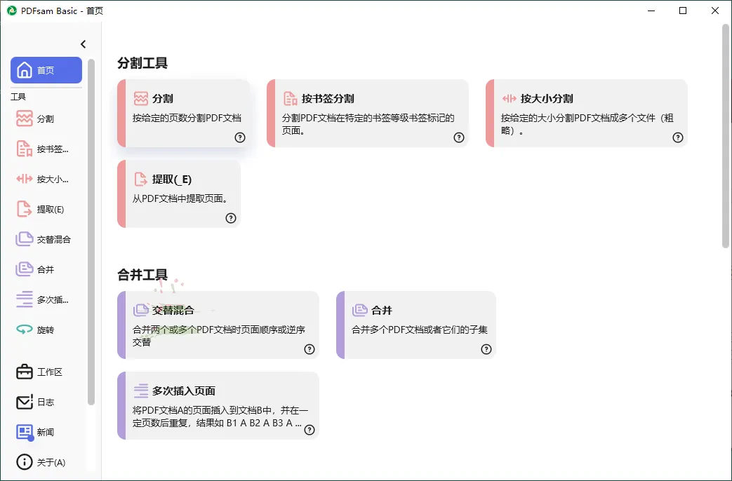 PDFsam Basic PDF分割v5.4.5绿色免费版,PDF文件合并拆分、页面提取旋转一站式解决