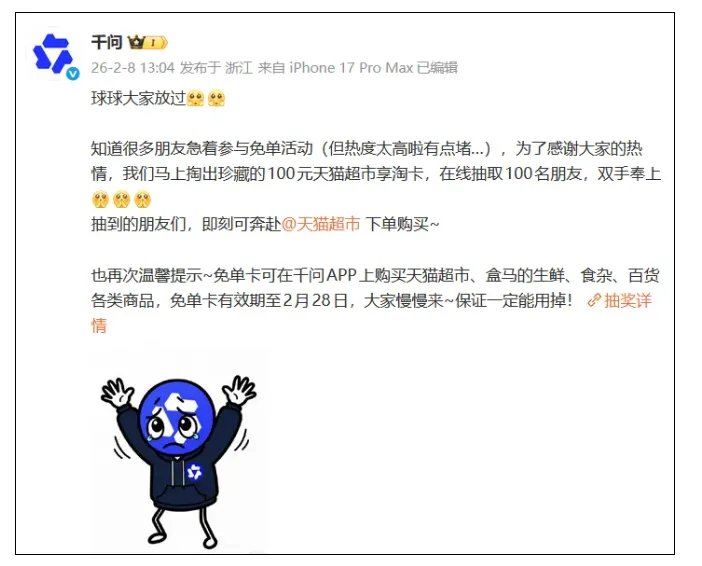 1分钱,100万杯!千问App“请客”,这波薅羊毛,旺