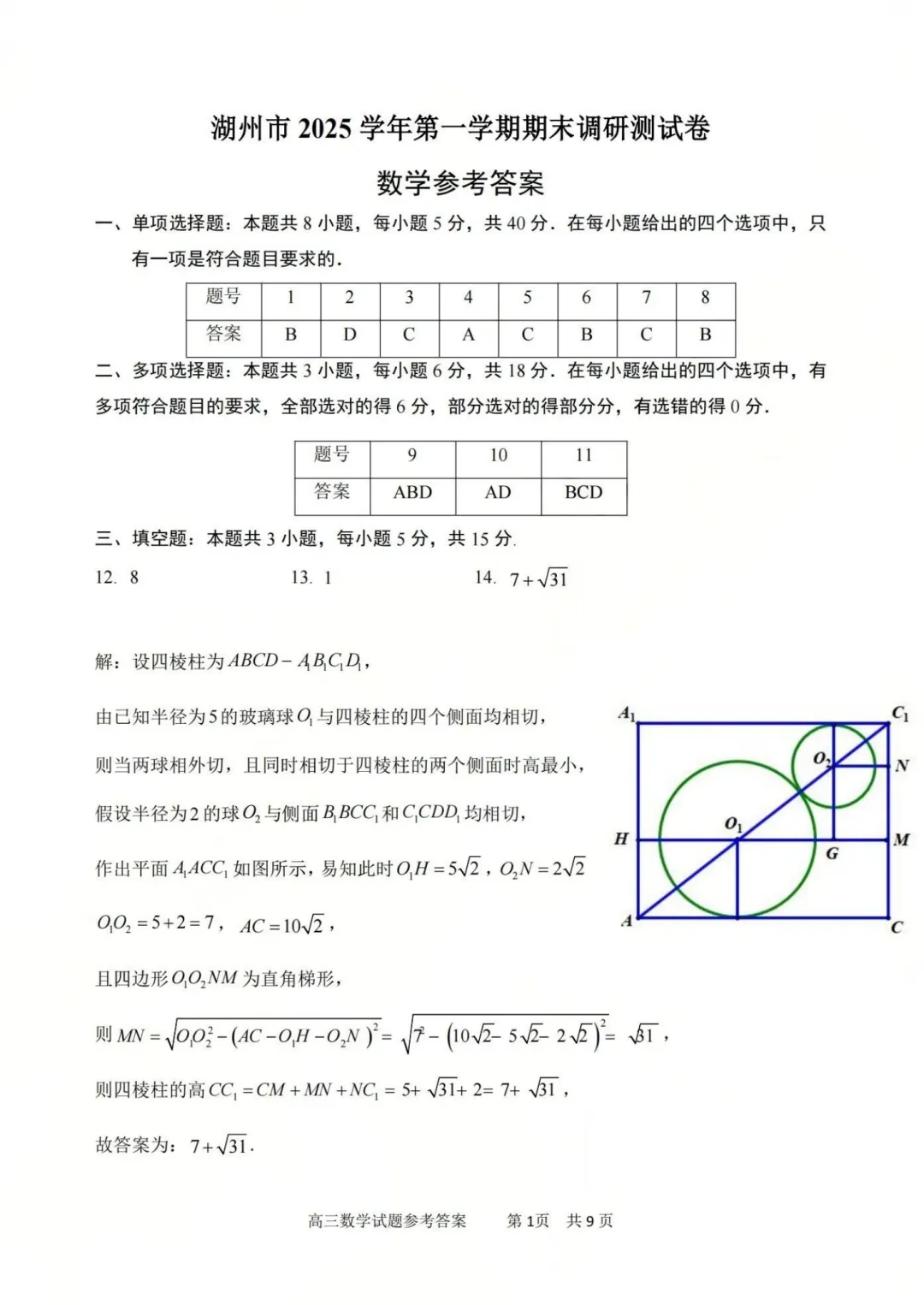 (高三)word稿2026.1湖州市(湖丽衢)高三期末语文数学《试题》及参考答案
