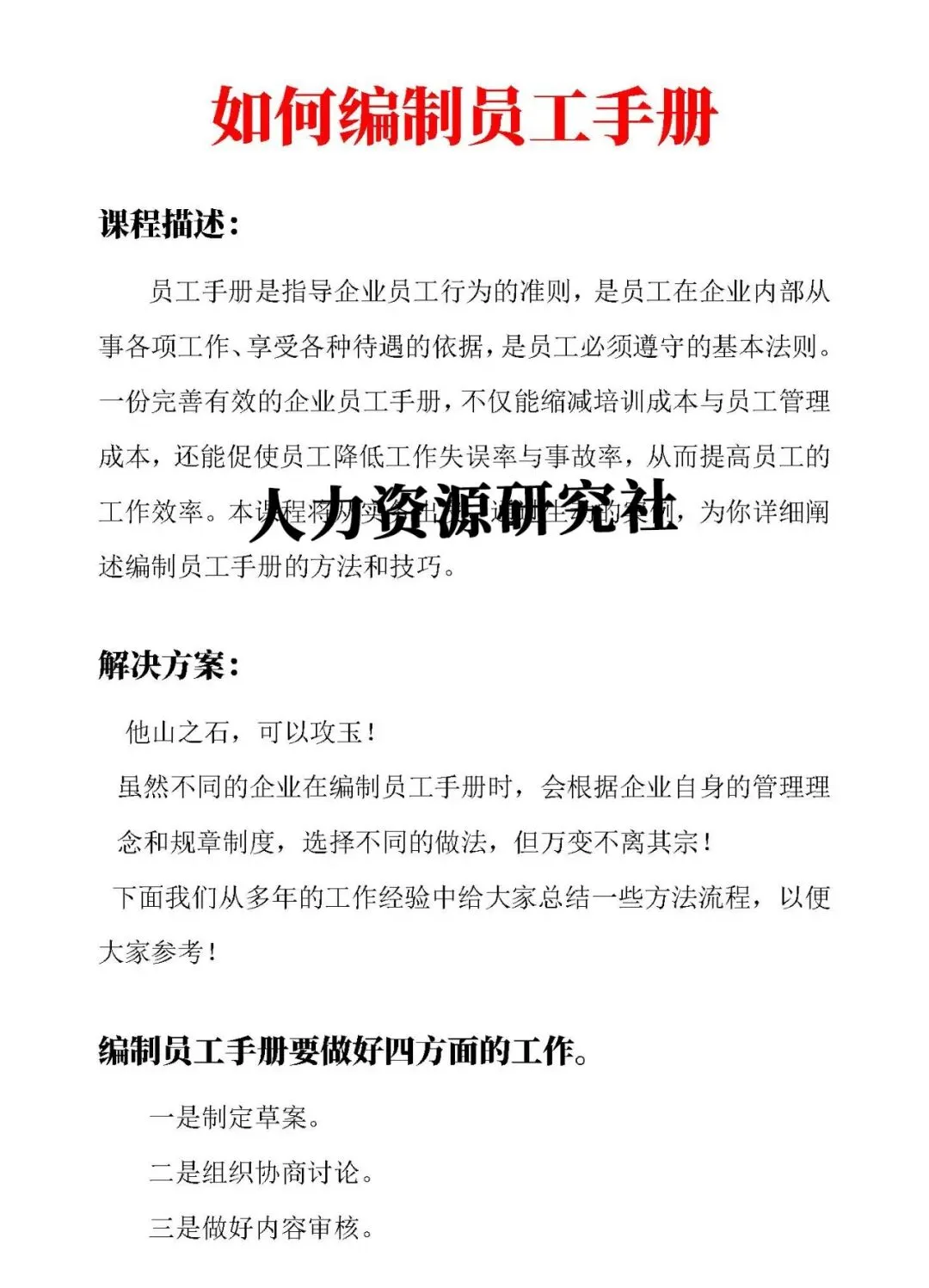 《员工手册》是新员工入职了解公司的第一步,也是公司防范用工风险的第一道屏障。