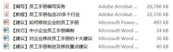 资料包括:员工手册PPT课件、名企员工手册、手册编写风险防范、手册编写技巧、各行业手册范本。