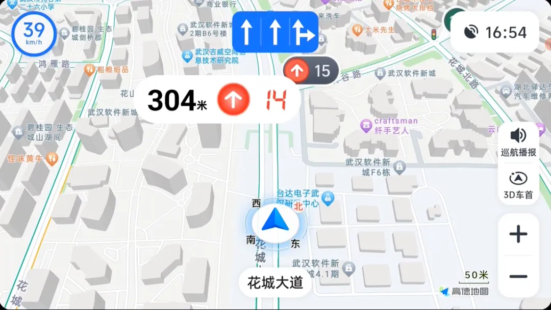 红绿灯倒计时读秒精准度提升,上个版本体验时,红绿灯倒计时读秒和高德地图车机版相差3-4秒,本次体验相差只有1秒,可以说非常准确了。