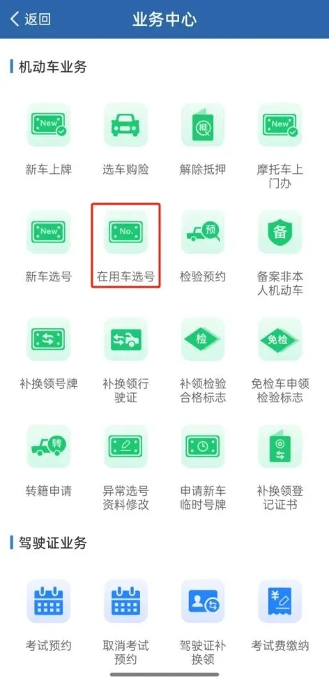 传统路径:“交管12123”App——点击“更多”,在“机动车业务”栏下找到“新车选号”,选完号码还是要返回业务模块进行提交哦。