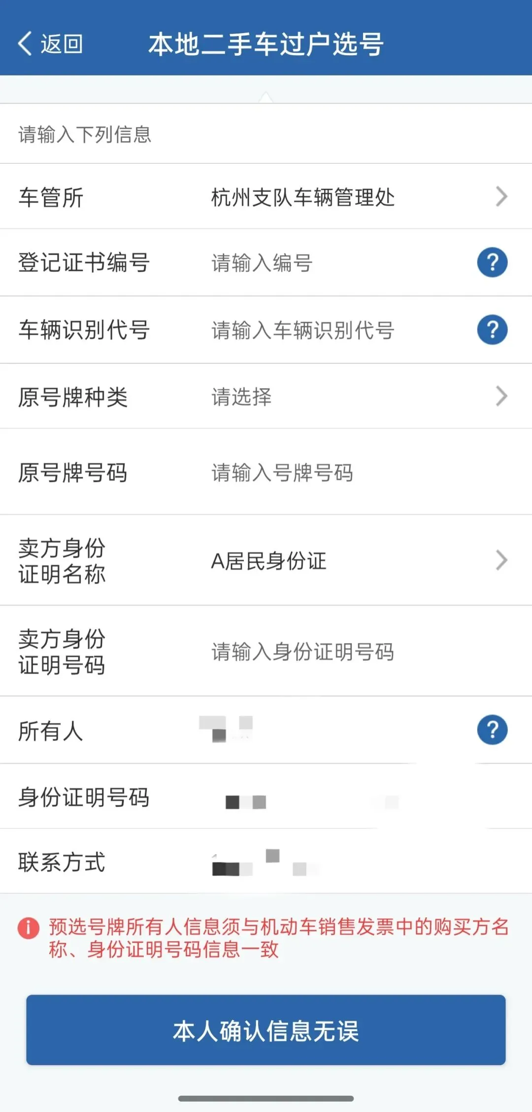 注:异地转(迁)入的车辆,完成机动车转籍申请后,可通过该功能在本市申请办理机动车转入选号业务。