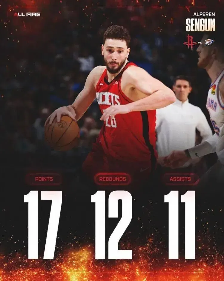 凌晨的比赛,火箭艰难险胜没有亚历山大的雷霆,送给对手两连败,领先湖人半个胜场,排在西部第四。