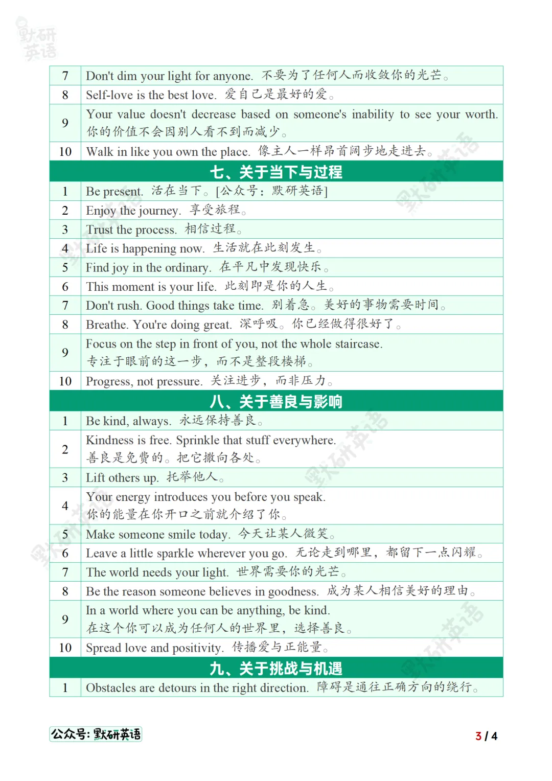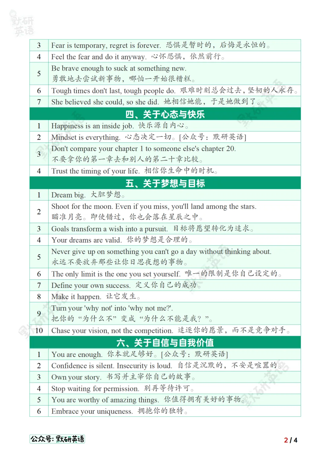 无论是清晨的自我打气,还是低谷时的力量补给,都可以在这些句子里找到共鸣。读熟它们,把积极的能量揉进日常,让每一天都元气满满✨