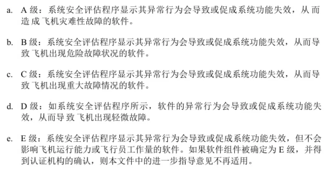 航空软件遵循《DO-178C 机载系统和设备合格审定中的软件考虑》作为核心标准,该框架根据软件安全等级(A-E级)制定严格的开发要求。A级软件(如飞行控制系统)的开发过程最为严苛,因为其故障可能导致灾难性后果。