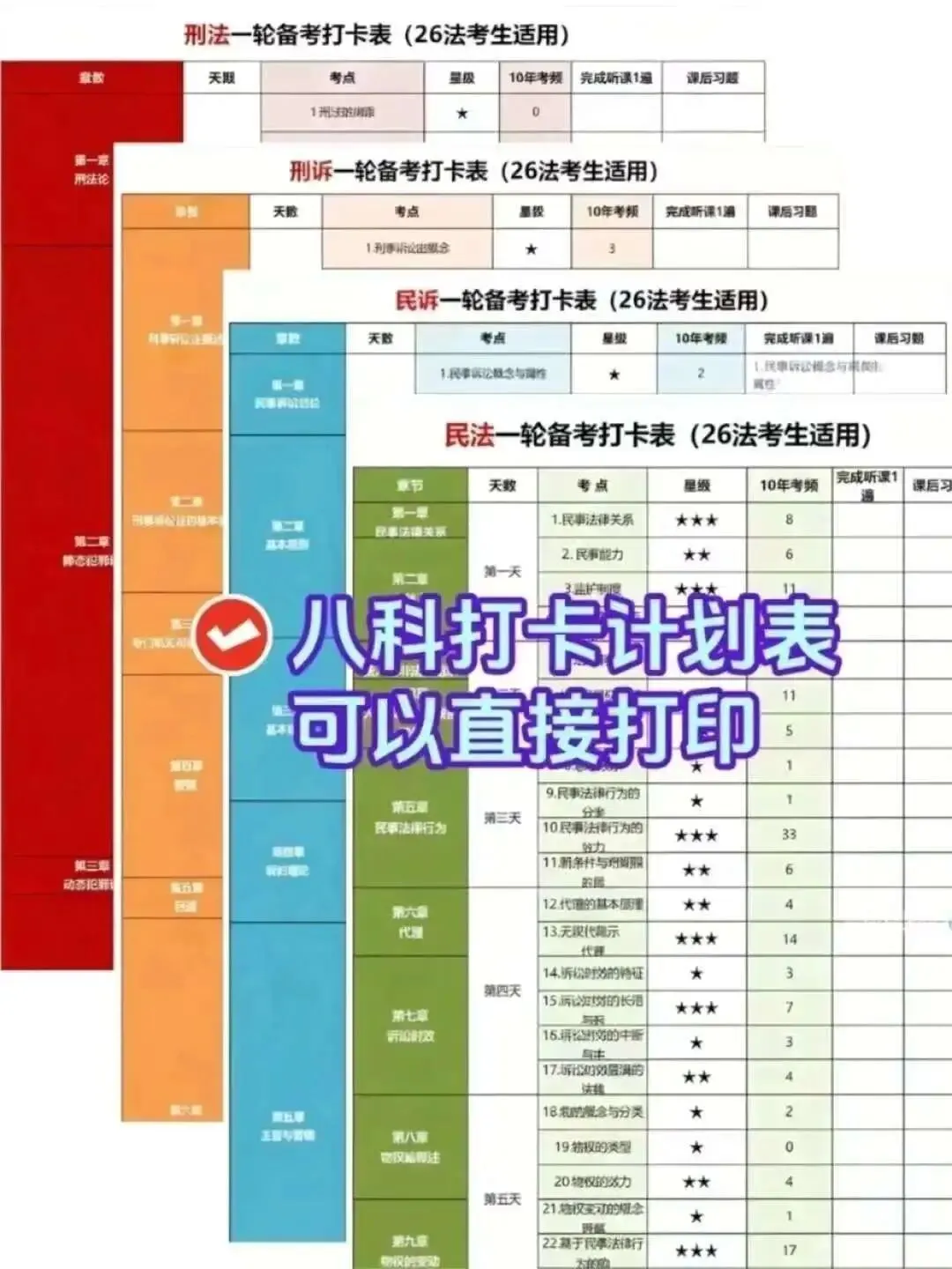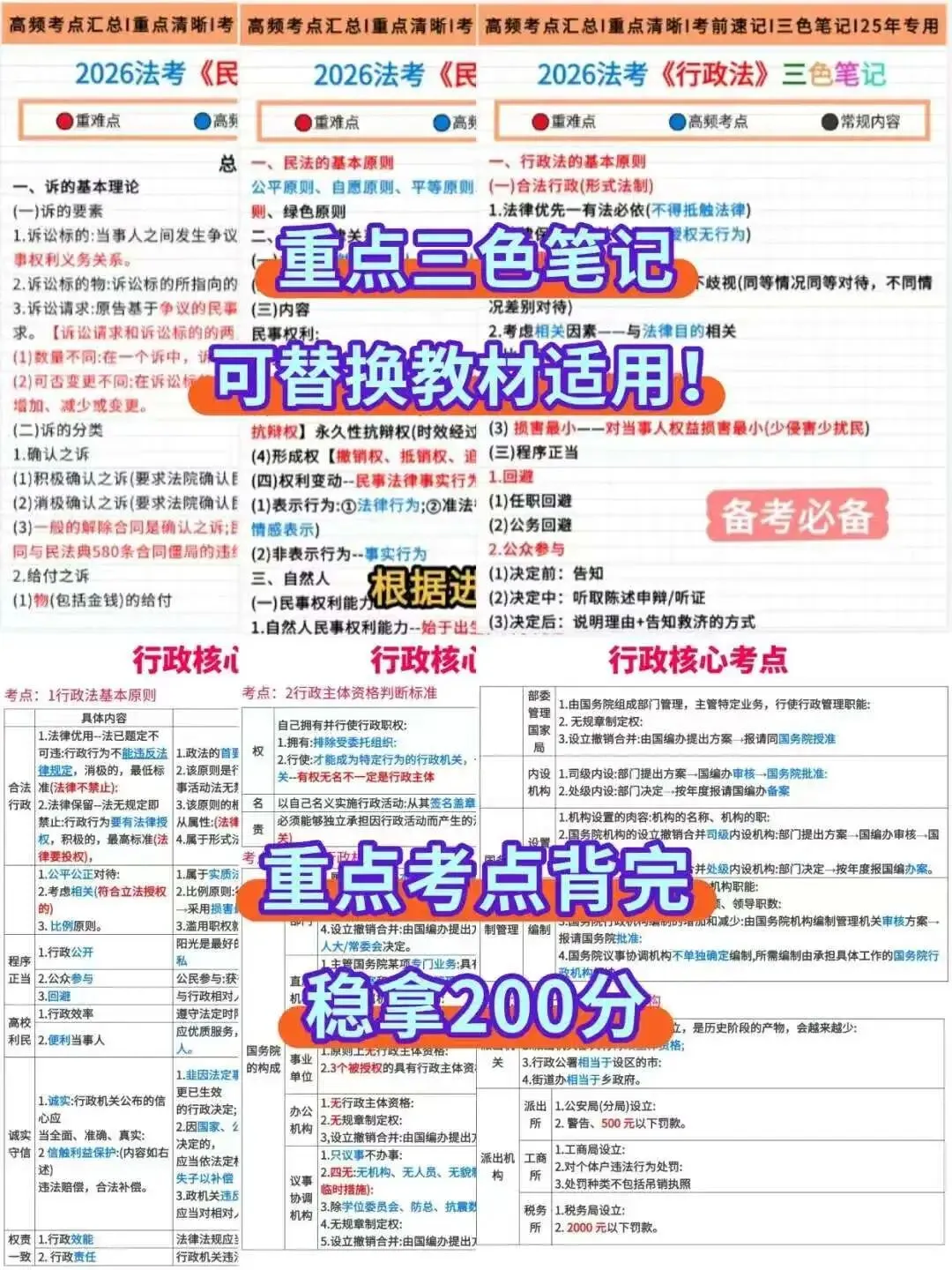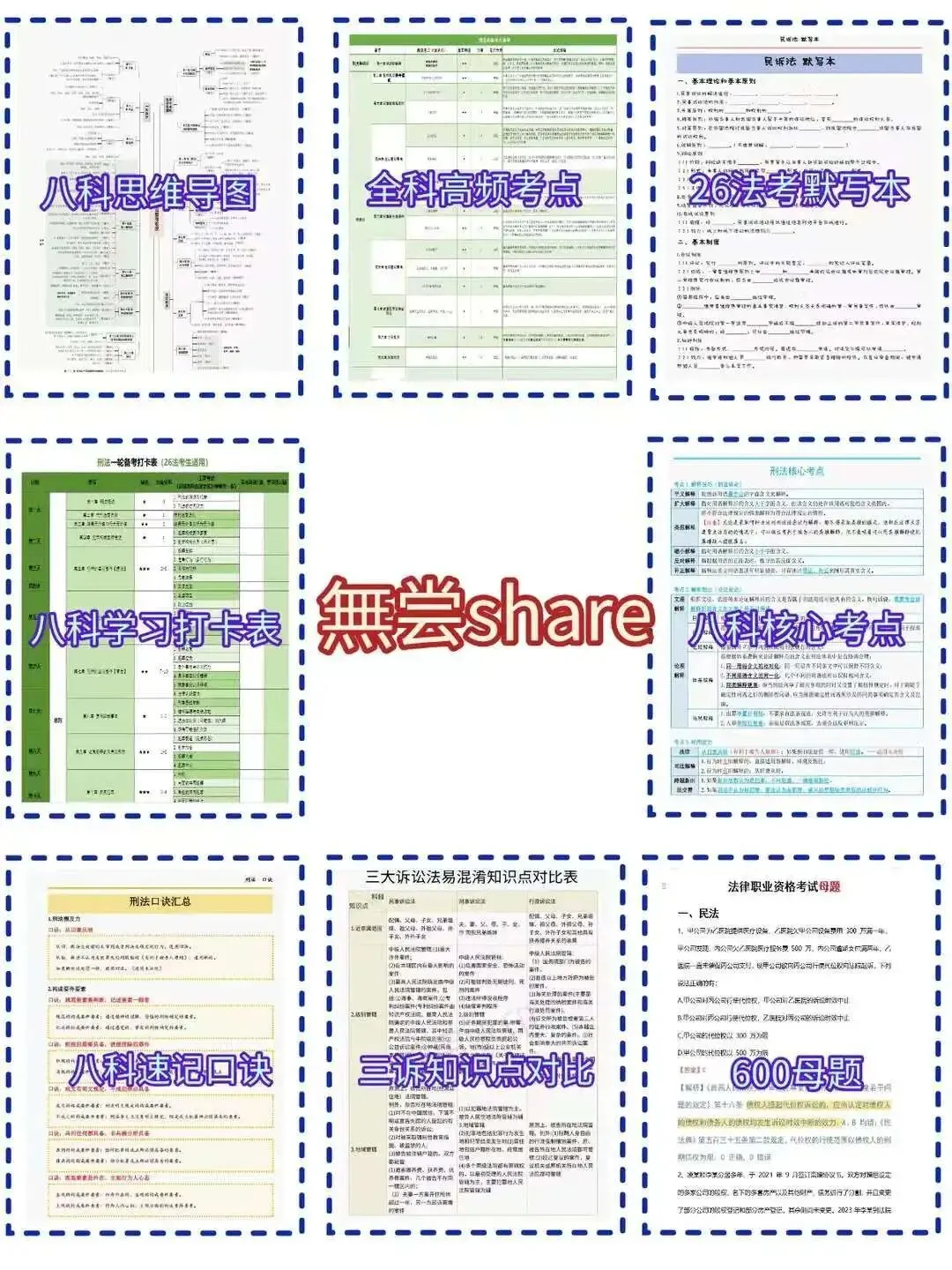 法考资料完整版PDF已更新(直接打印) 📚26年法考超全备考资料都给大家整理好了,按照这些资料认真学过法考不难的,抓紧时间学还来得及!加油冲呀! 1 3 5 2 4 6 资料包含每日打卡表、思维导图、高频考点清单、三色笔记、学霸日记、精讲卷、真金题、系统强化,模拟题,母题,口诀,答题技巧,默写本等等(会持续更新的),超清pdf🉑️打印。 ✨给大家整理一下法考会用到的备考工具,具体如下 司法考试备考资料汇总:📁法考备考资料包(PDF直接领) ★背诵类:法考三色笔记.pdf ★辅助类:法考考点默写本.pdf ★规划类:法考学习打卡表.pdf ★梳理类:法考学科思维导图.pdf ★速记类:法考高频考点口诀.pdf ★刷题类:法考600道分科目母题.pdf ★真题类:近五年法考真题(分年+分科版).pdf ★关键工具:法考模拟系统(刷题+模考一体) 关注获取电子版、截图保存,或扫码识别获取 ➕V:yz30096(领取)