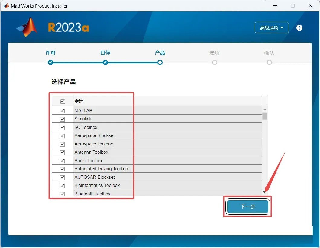 9、根据自己需要安装产品,点击“下一步”