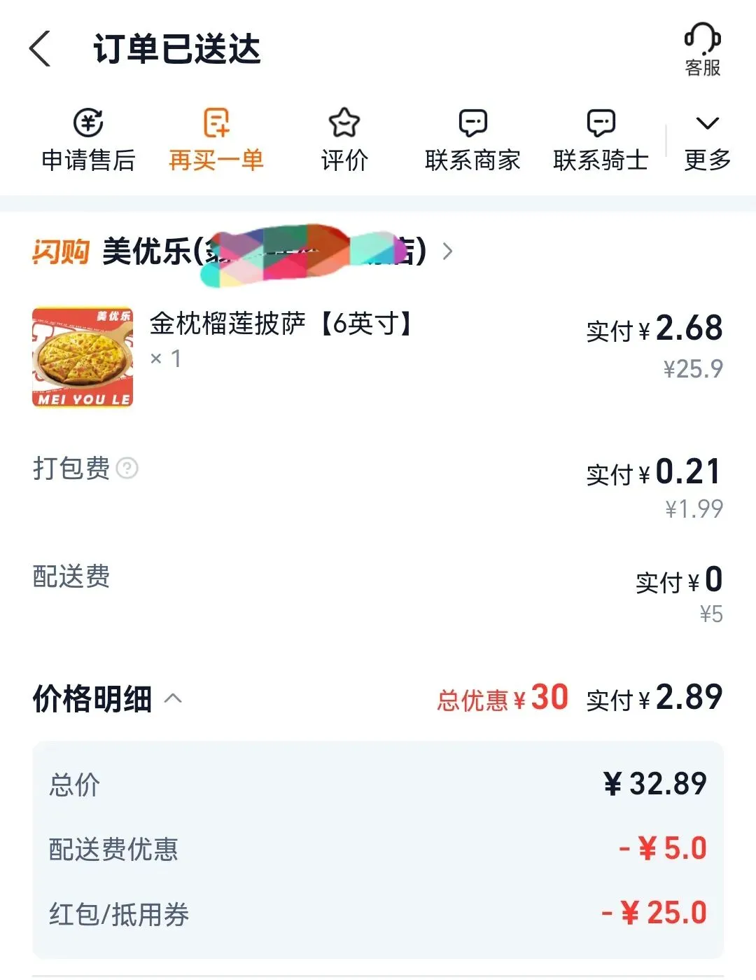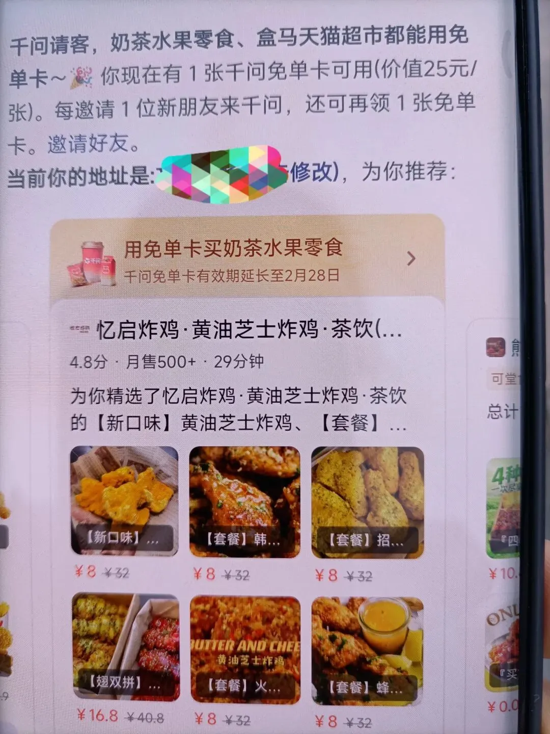 各大平台都开启了薅羊毛的活动,支付宝千问下载可以送 25 元免单券,我今天也试了一下,点了一份美味的榴莲披萨和一份炸鸡。