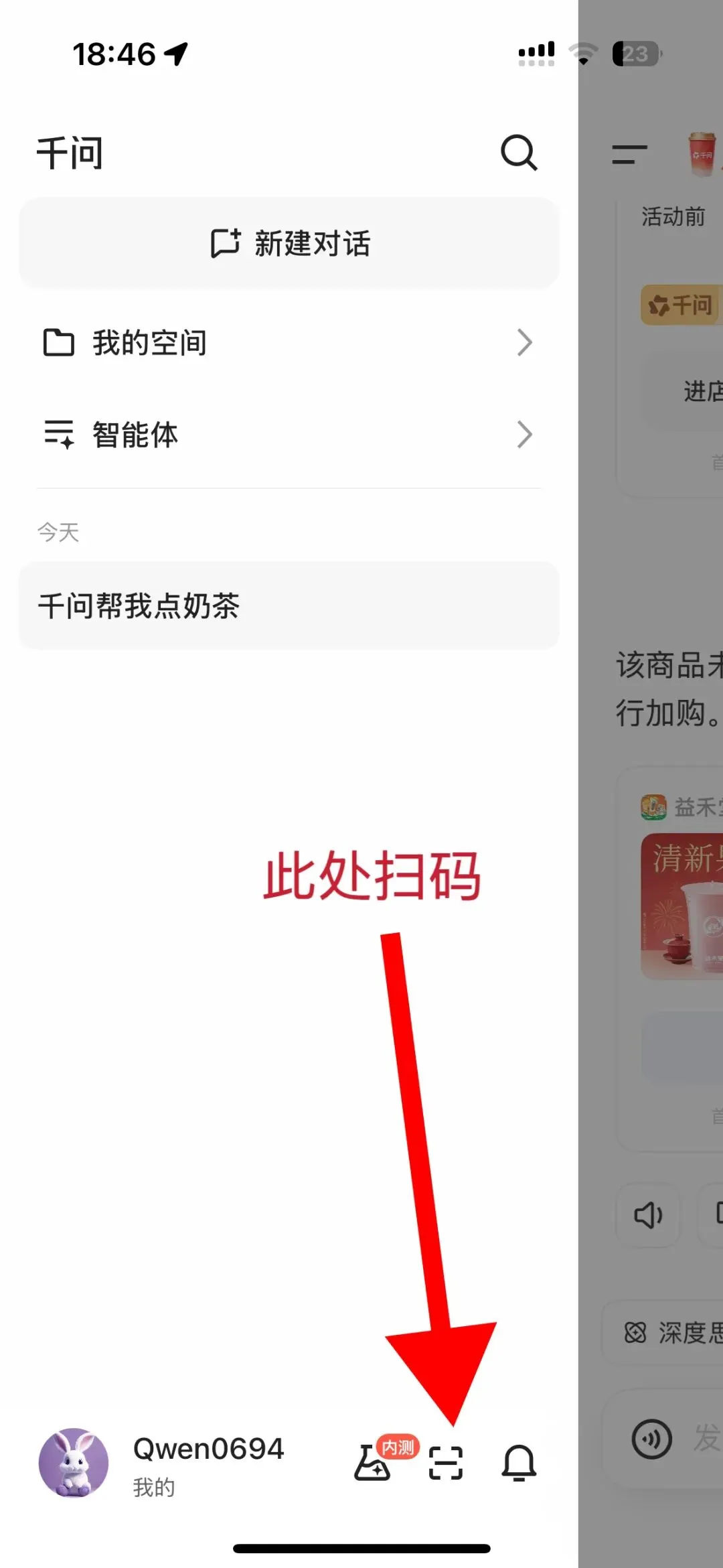 先去手机应用商店搜索 「千问APP」 并下载。安装完成后打开App,进行注册登录后 点击首页右下角的「相机」图标,就能打开扫码功能啦