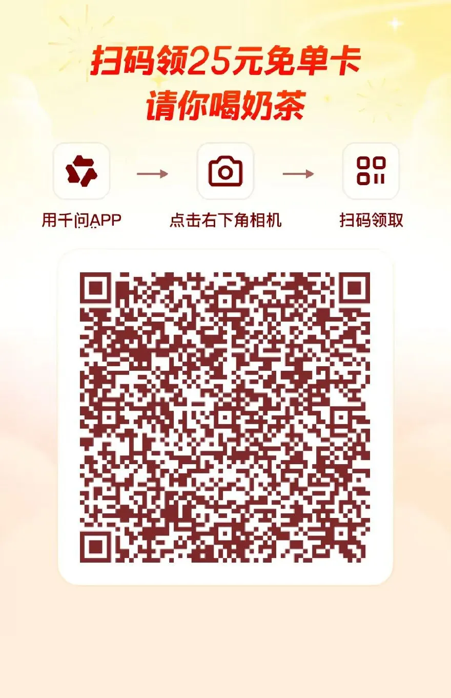 🎁活动核心:下载千问APP,扫码领取25元免单卡