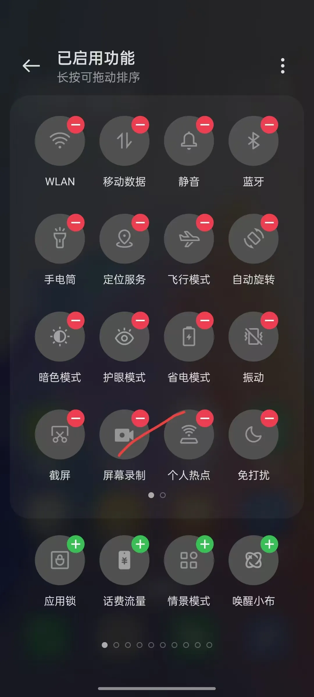 若没有该图标,点击控制中心右上角的编辑按钮(通常是铅笔图标),在可添加功能中找到 “屏幕录制”,长按拖入常用区域。