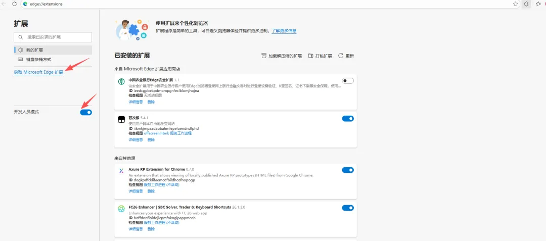 2、进入扩展市场,如图,打开开发人员模式,安装篡改猴