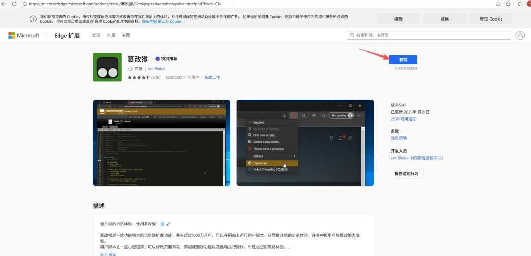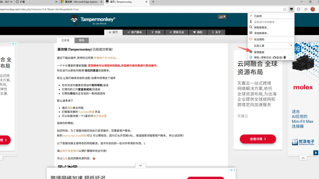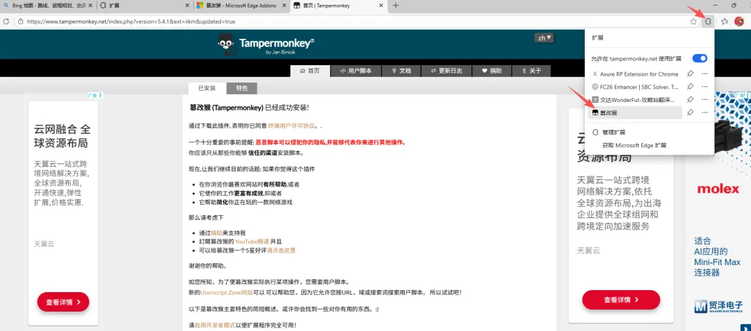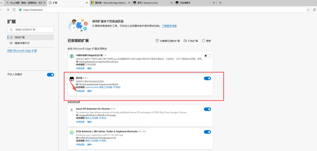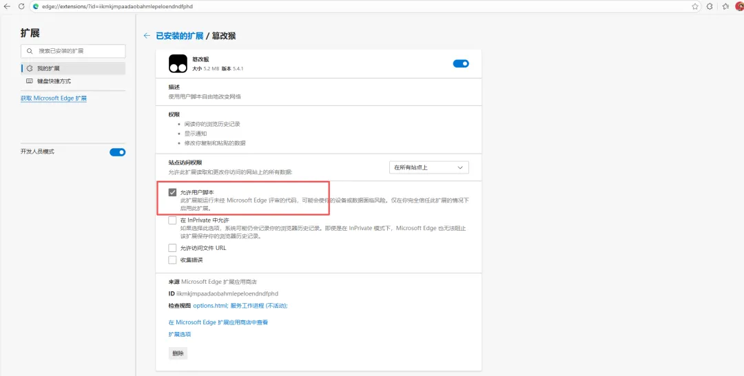 3、篡改猴安装成功后,如图,点击详细信息,允许用户脚本