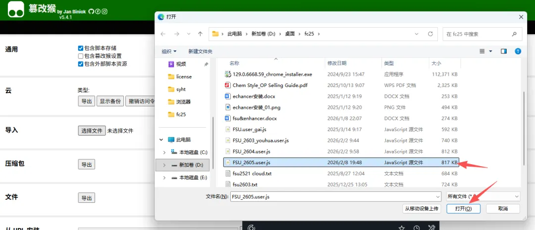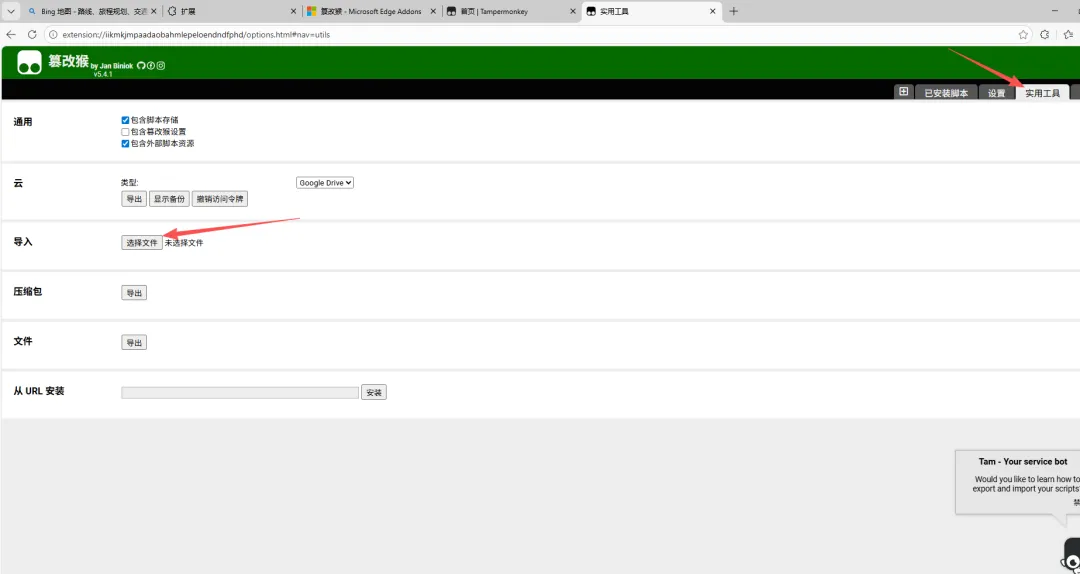 4、进入篡改猴管理面板,导入已下载好的插件文件