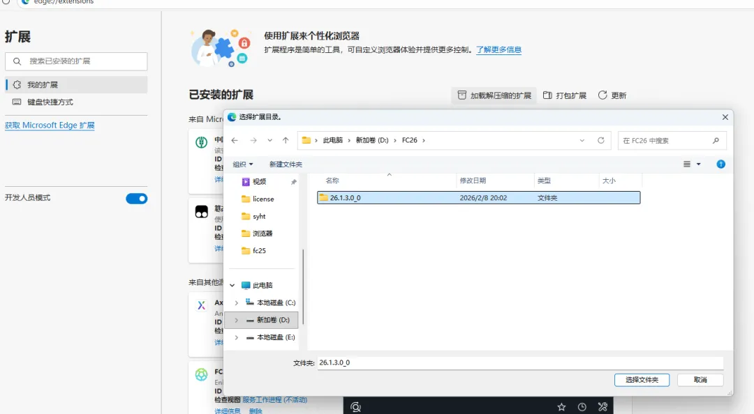 3、在扩展管理中加载解压好的插件文件夹,如图