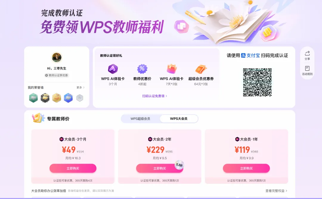今天课件老师准备打开WPS研究一下它的文档提问功能。无意间却看到了它给老师们的福利。