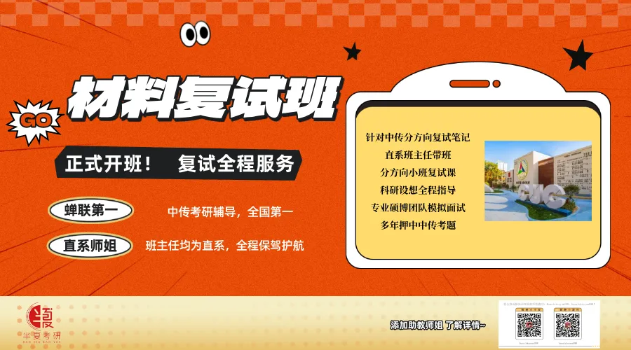 PS:半夏的材料评议8成过线。复试班部分超8成最后考上了。辅导的学院针对性非常强,成功率也非常高。详情请看→