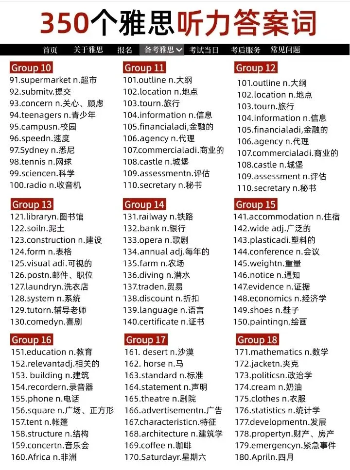 雅思听力350答案词(附高清PDF)背完直接上7+!!