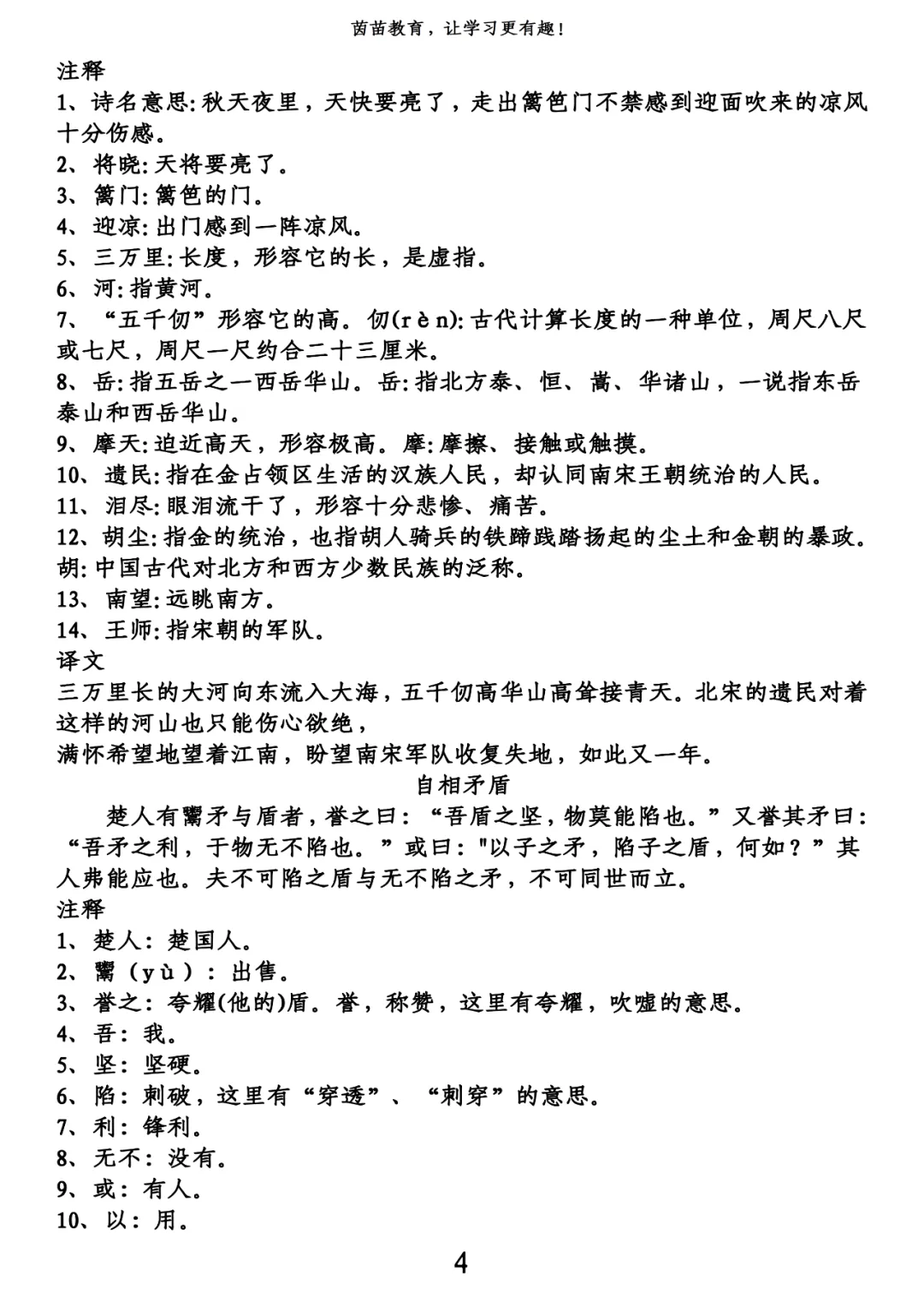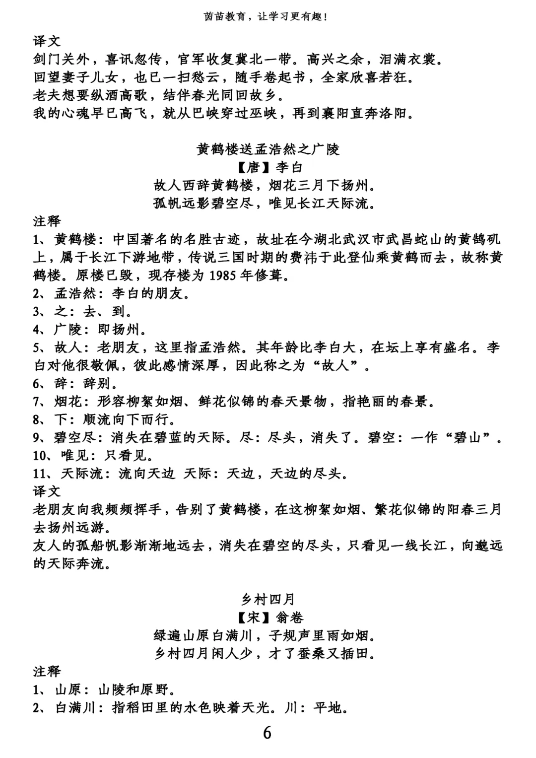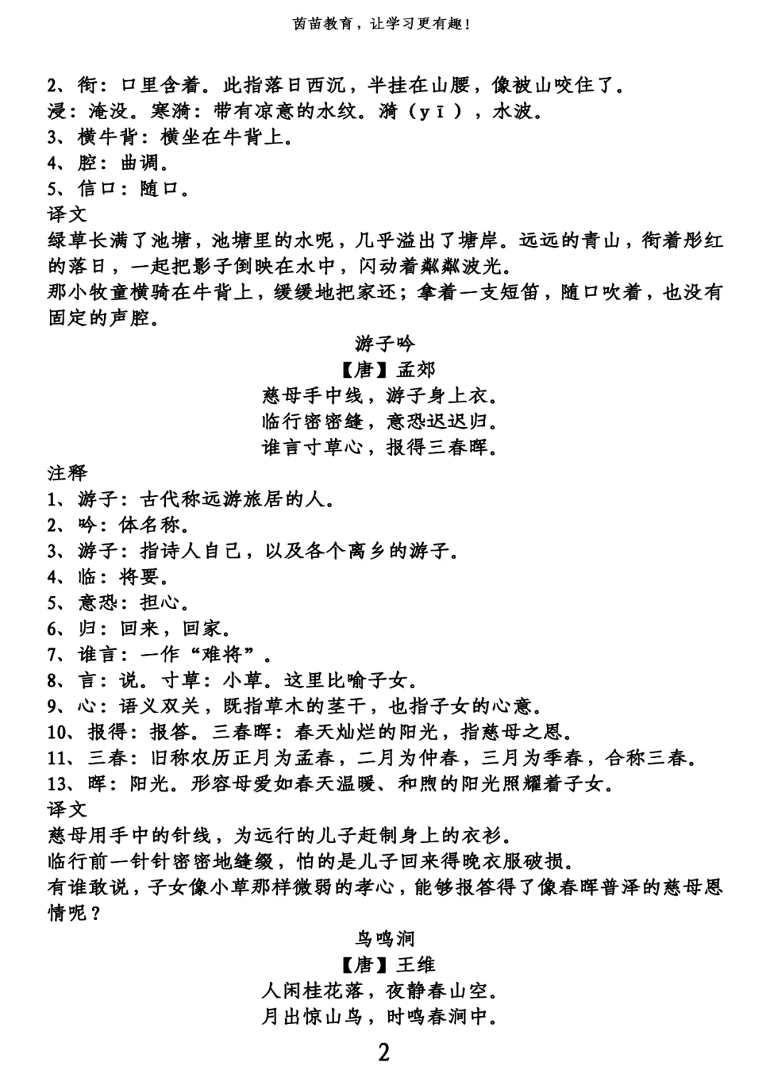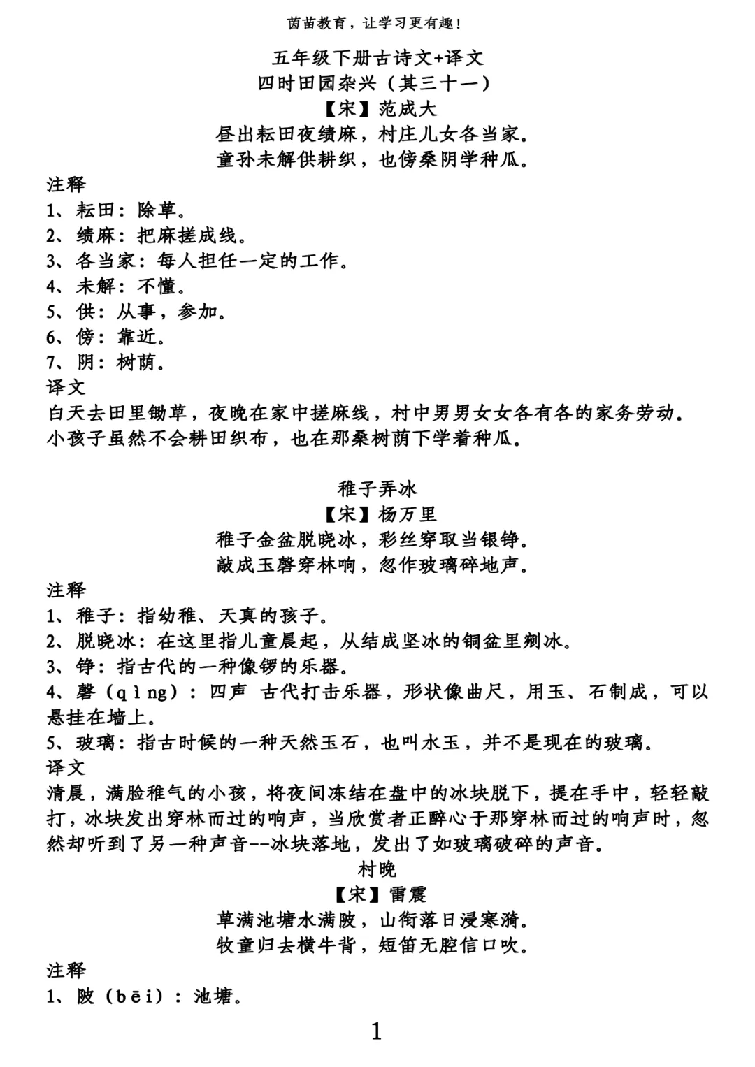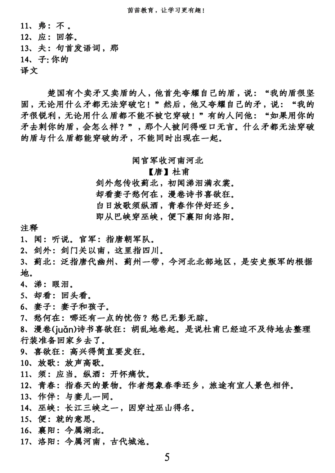 五年级下册古诗+译文pdf,可打印!
