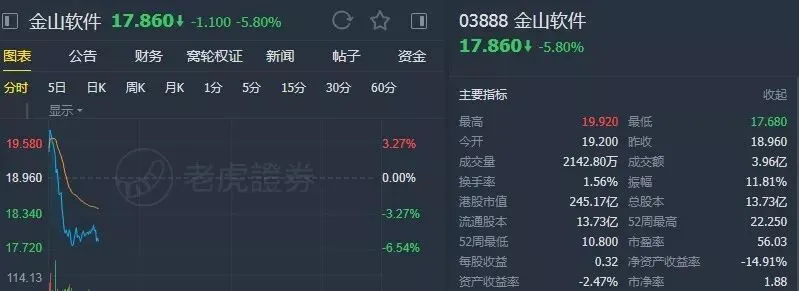 11月14日,金山软件公布季度业绩,赚得3661万元,但这一消息无法挽救暴跌的股价。到上午11点,金山词霸下跌了8%,市值仅为239亿港元,几乎是金山办公室价值的三分之一。