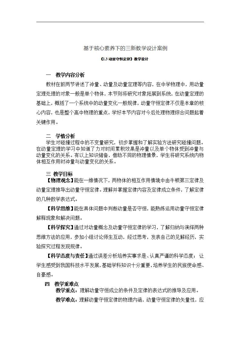 动量守恒定律教学设计word版