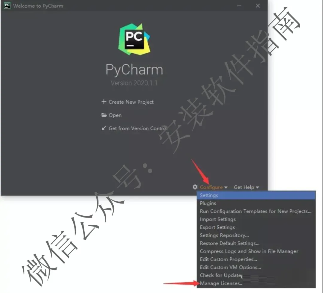 21、pycharm重新打开后,点configure选择Manage License