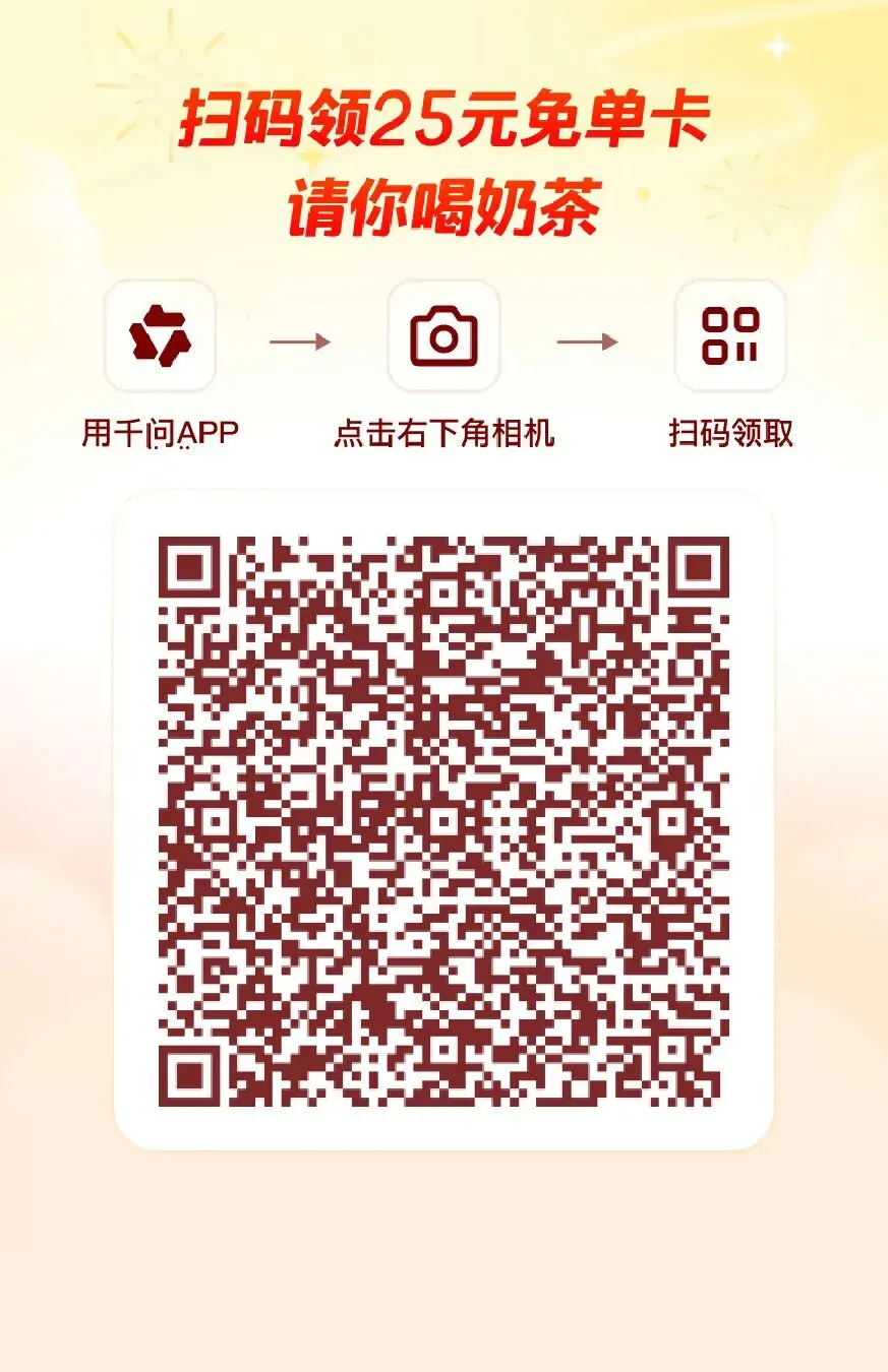 阿里千问APP今天正式启动“春节30亿大免单”,每人可领取21张无门槛的25元免单卡