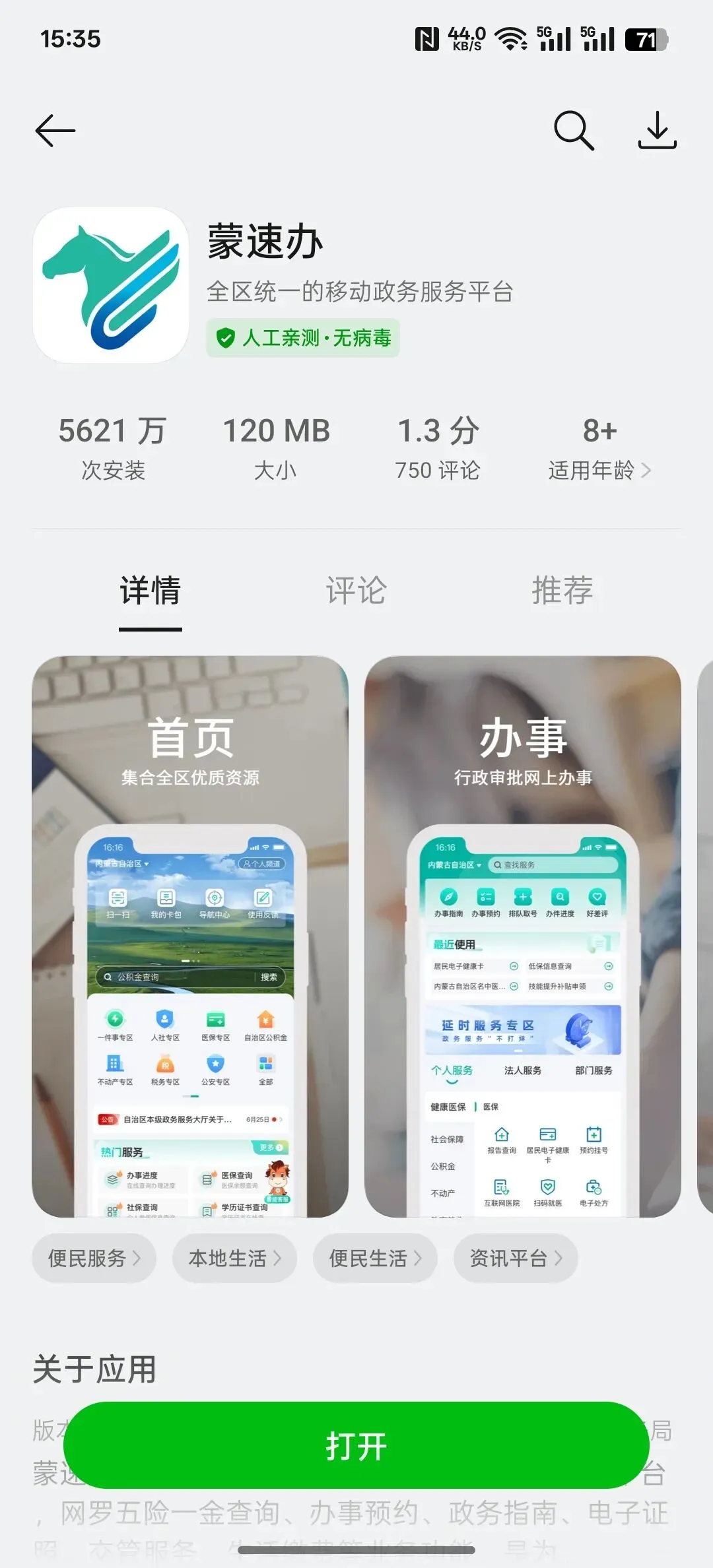 首先,在手机应用商店搜索 “蒙速办”,下载并安装“蒙速办”App。