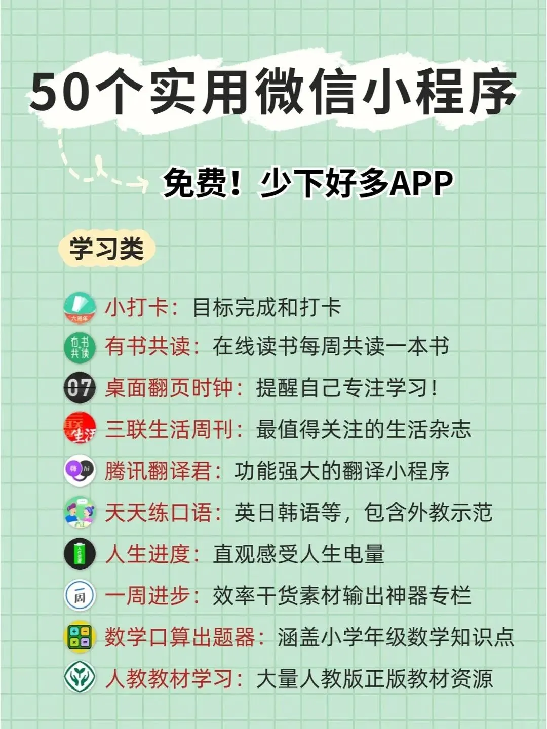 50个实用微信小程序!免费!少下好多APP!
